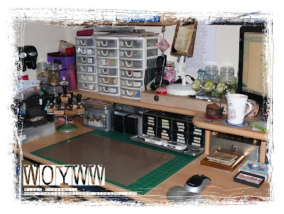 Right i'm going to have to apologise prefusely to Julia and all the What's On Your Workdesk Wednesday'ers and just say i am really sorry if this offends anyone as i know some of you will be totally horrified with what i'm about to show you !!!!